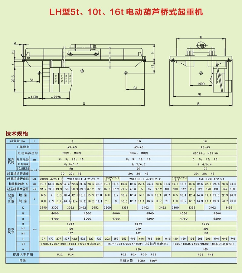 LH型5t、10t、16t電動葫蘆橋式起重機